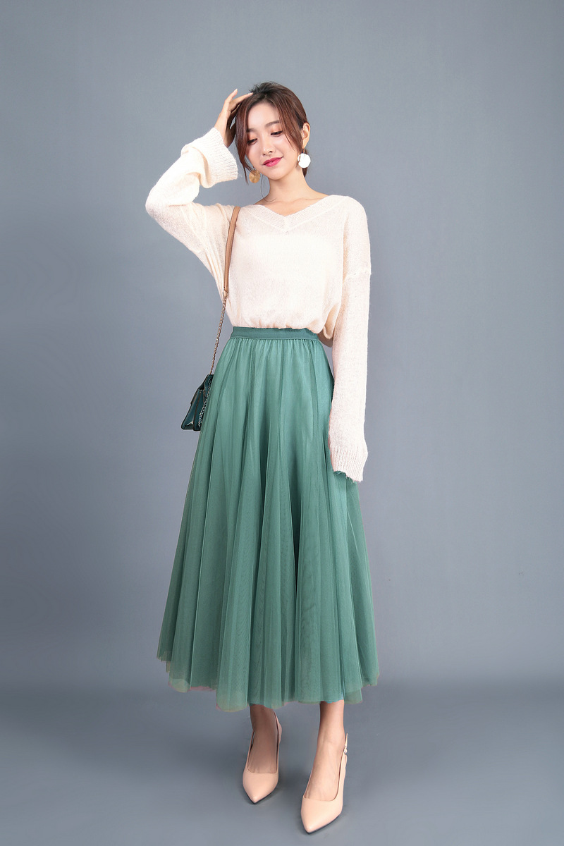 Spring Big Swing Puffy Ankle Long Skirt High Waist Slim Fairy Skirt Mesh Skirt A-line Skirt Harajuku Vintage Y2k Clothes