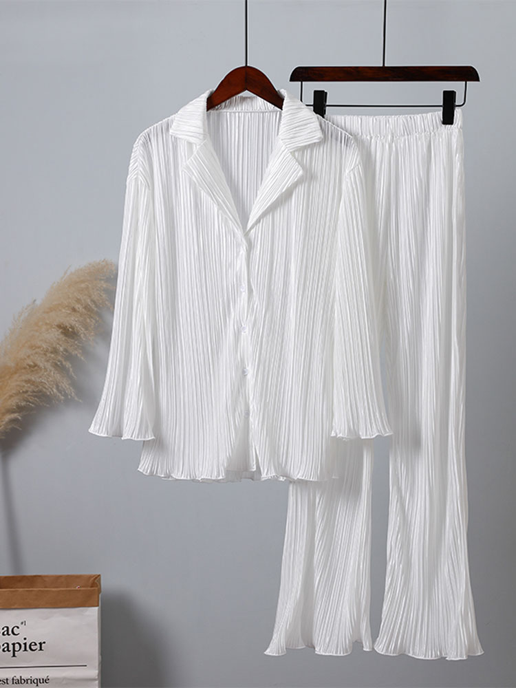 Spring Women's Shirt Pleated Two Piece Set Loose High Waist Wide Leg Pants Suit Casual Elegant Office Ladies Female Outfit