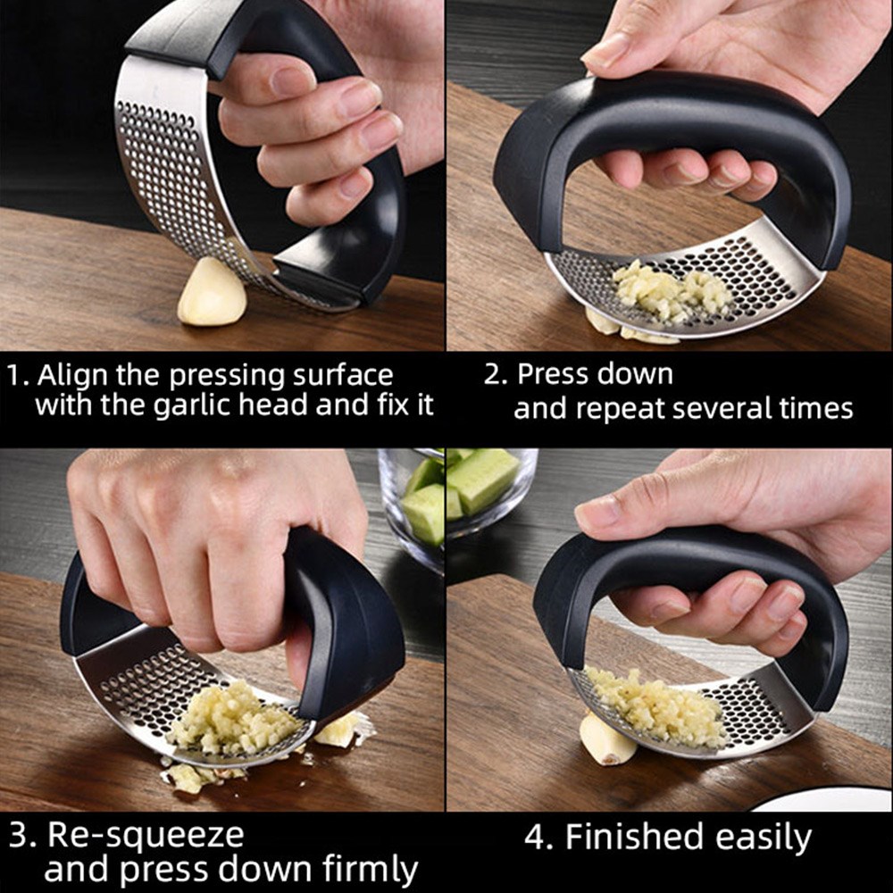 Material: stainless steel + plastic Size: 11 * 7 * 5cm snap garlic tool Characteristics: (1) stainless steel material, durable; (2) The curved design is easy to roll back and forth. Note: 1. Due to different measurement methods, there is a slight deviation, please understand! 2. Because the shooting light and screen brightness are different, there is a little color deviation, please understand, thank you!