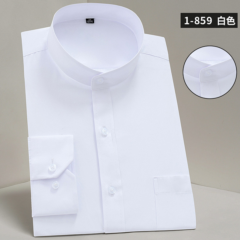 Stand Collar Long Sleeve Slim Fit Soft Comfortable Social Dress Shirts Men Party Wedding Male Tuxedo White Shirts