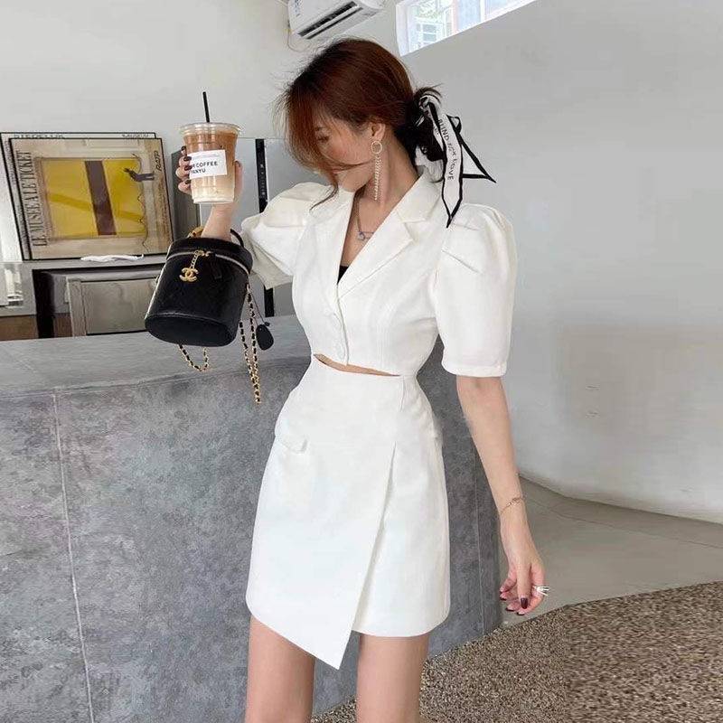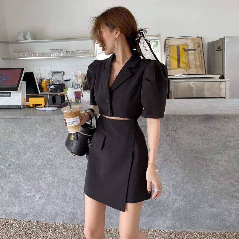 Suit SkirtSet Women Summer Bubble Short Sleeve Loose Temperament Suit Skirt Set Blazer and Skirt Set Skirt Set