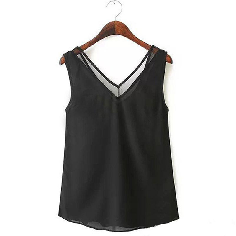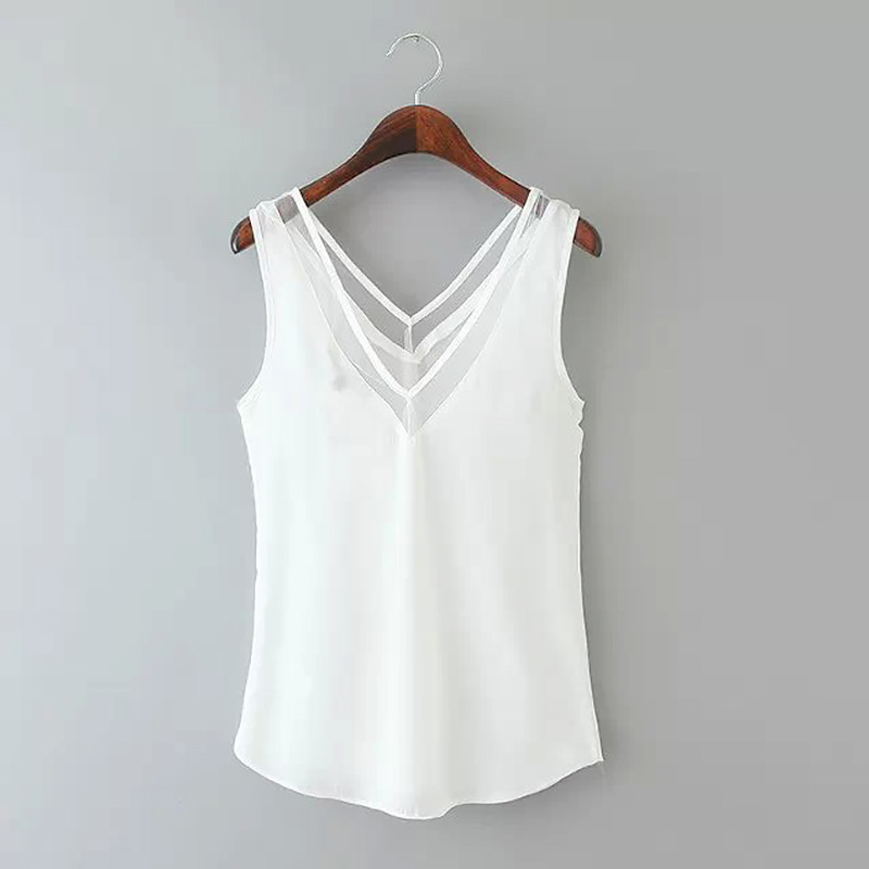 Summer Female Chiffon Vest Blouse Casual Black White Sleeveless Shirts Sexy V Neck Mesh Tops Plus Size S-3XL