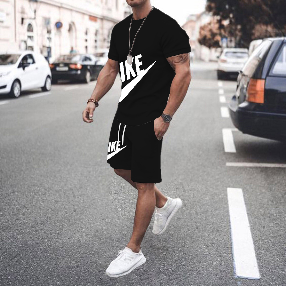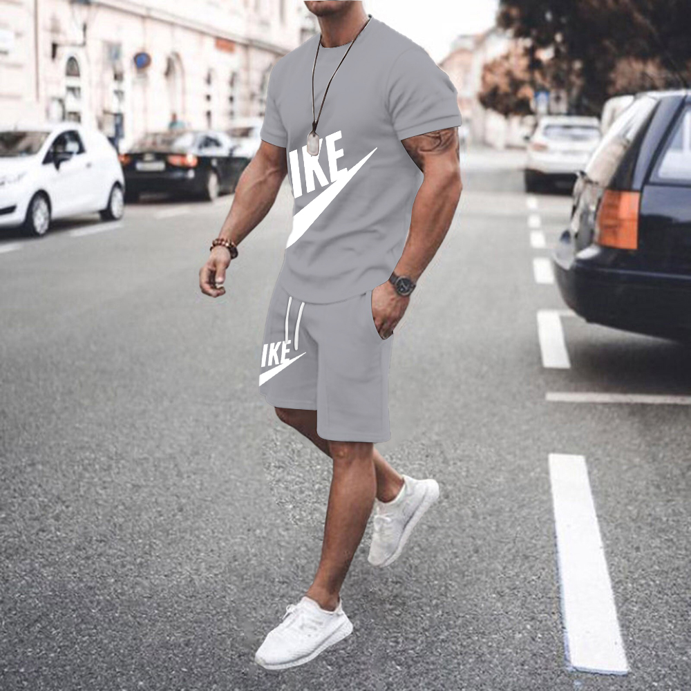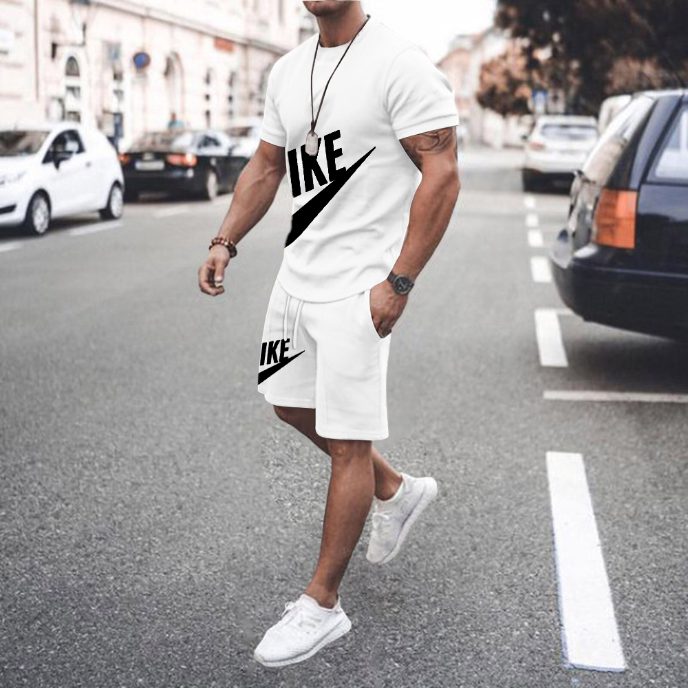 Summer Men's Fitness Men's Casual Sportswear Suit Oversized Sports Suit Short-Sleeved T-Shirt + Shorts 2-Piece Se