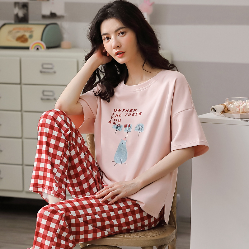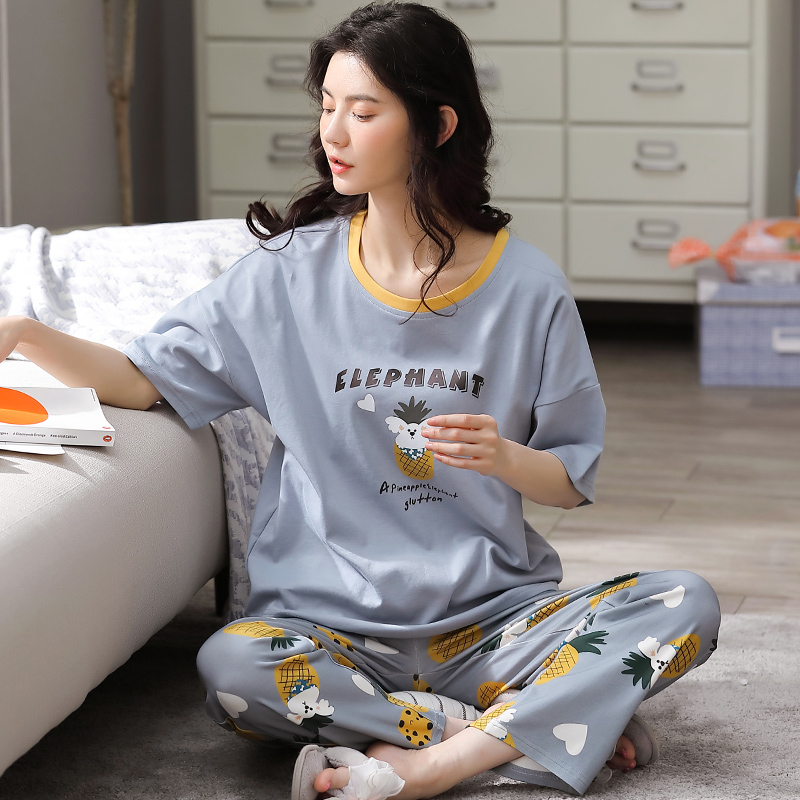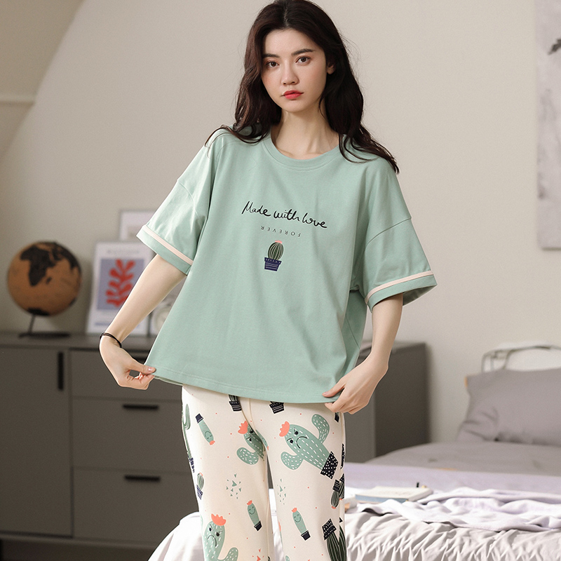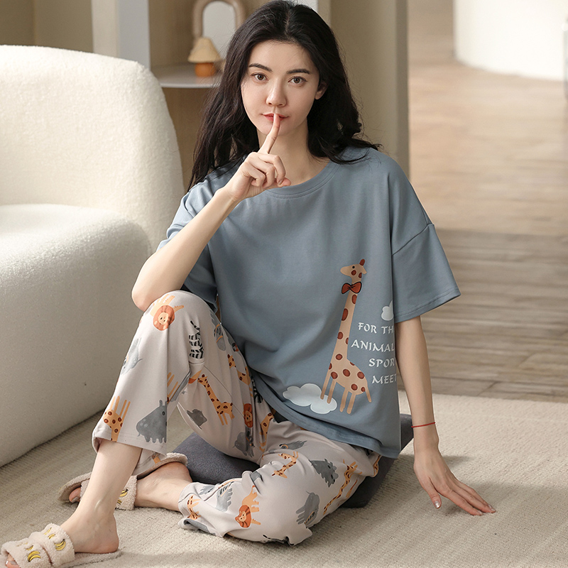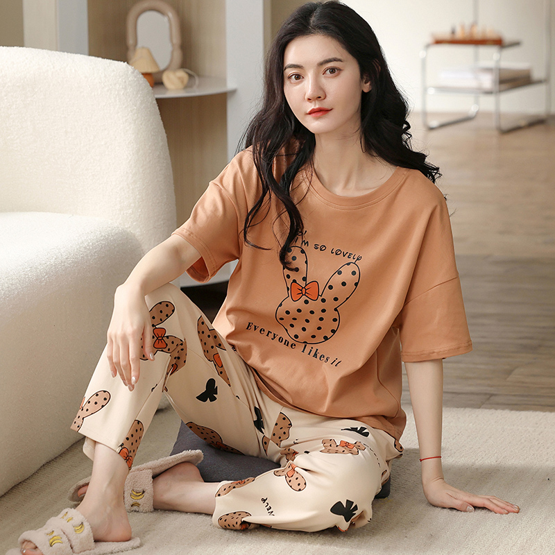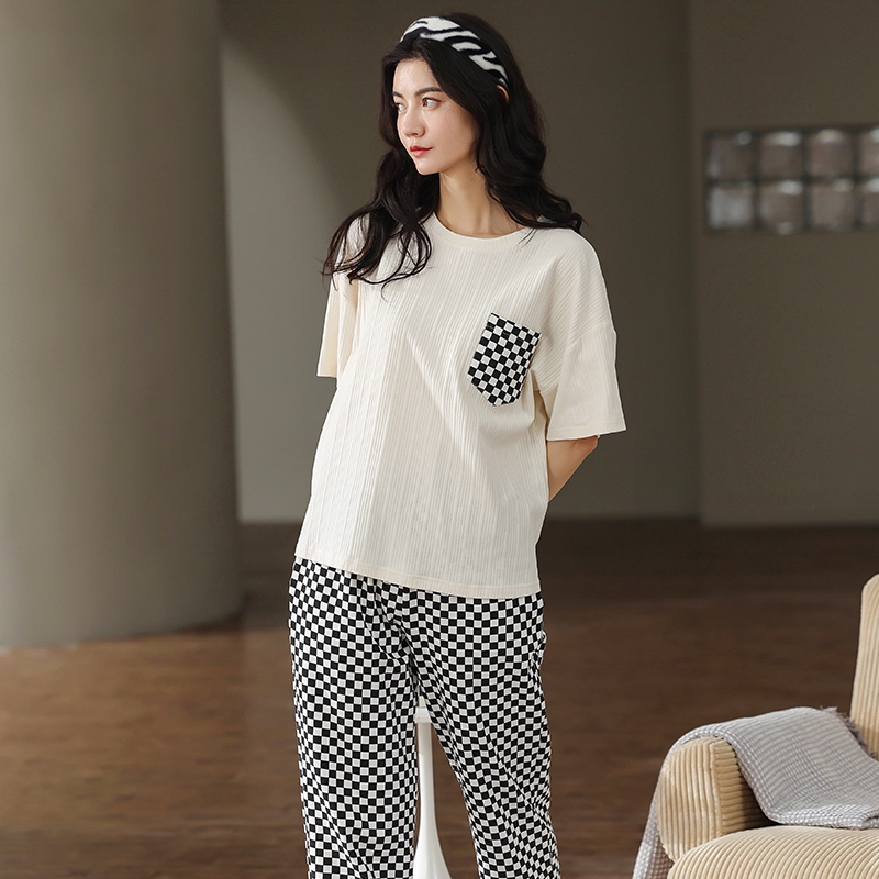Summer Pajama Sets Short Sleeved Drop Stitch Striped Knitted Cotton Sleepwear Elegant Women's Pajamas Lounge Home Pijama Mujer