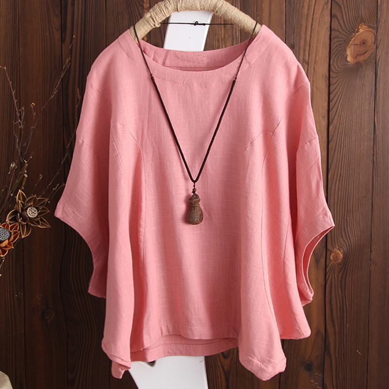 Women Casual Cotton Linen Pile Sleeves Large sized T-Shirt Blouse Ladies Tops Vintage Linen Blouse Female Top