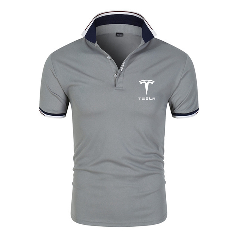 Summer Tesla Men's Casual Short Sleeve Polo Shirt Business Clothes Tee Male Breathable Polos Tops Men