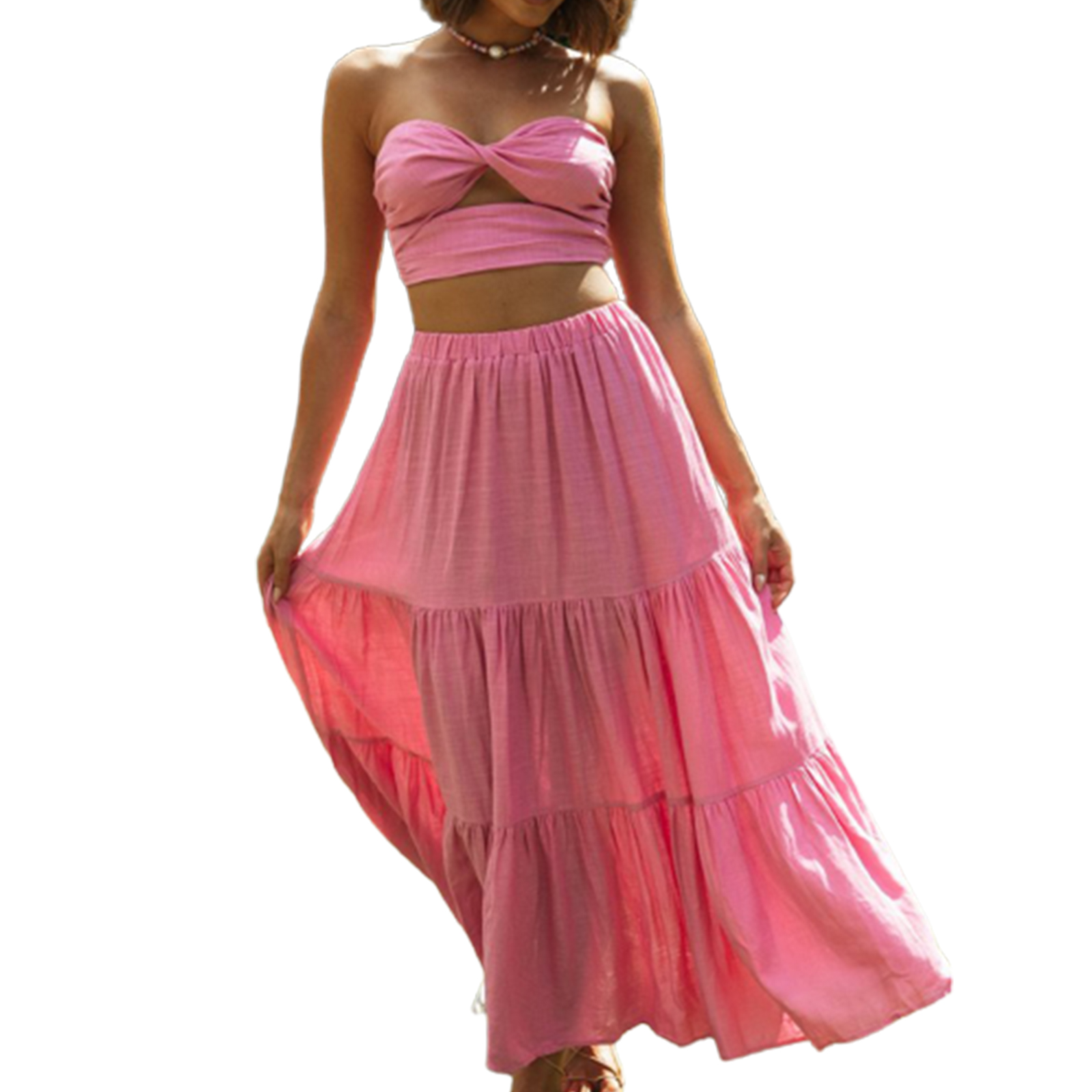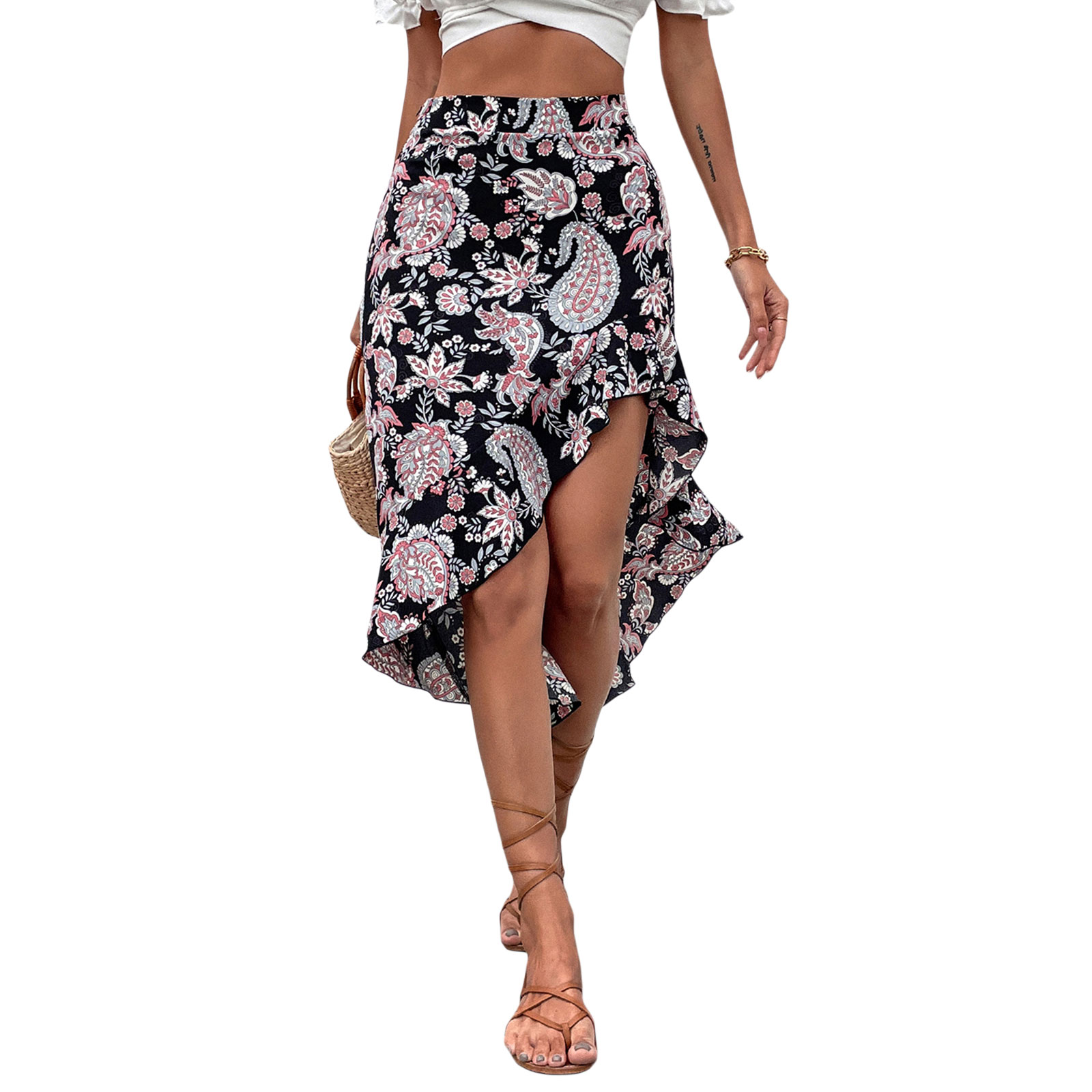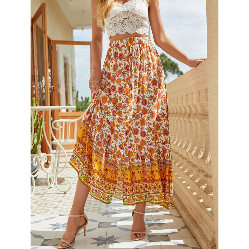 Summer Women Boho Floral Long Maxi Skirts Empire Beach Holiday Ruffles Skirt S-XL