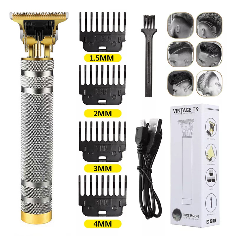 2022 Vintage T9 0MM Electric Cordless Hair Cutting Machine Professional Hair Barber Trimmer for Men Clipper Shaver Beard Lighter