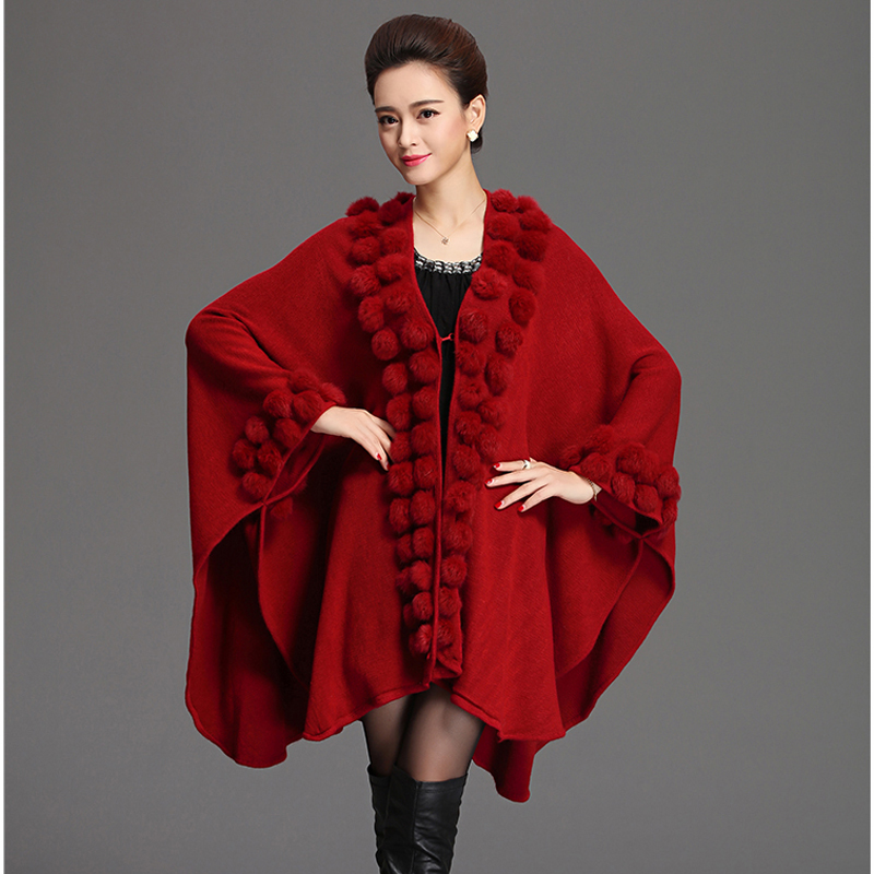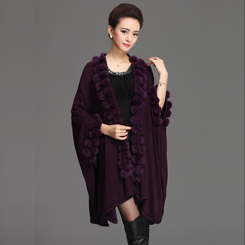 Women Rabbit Fur Poncho Shawl Coat Long