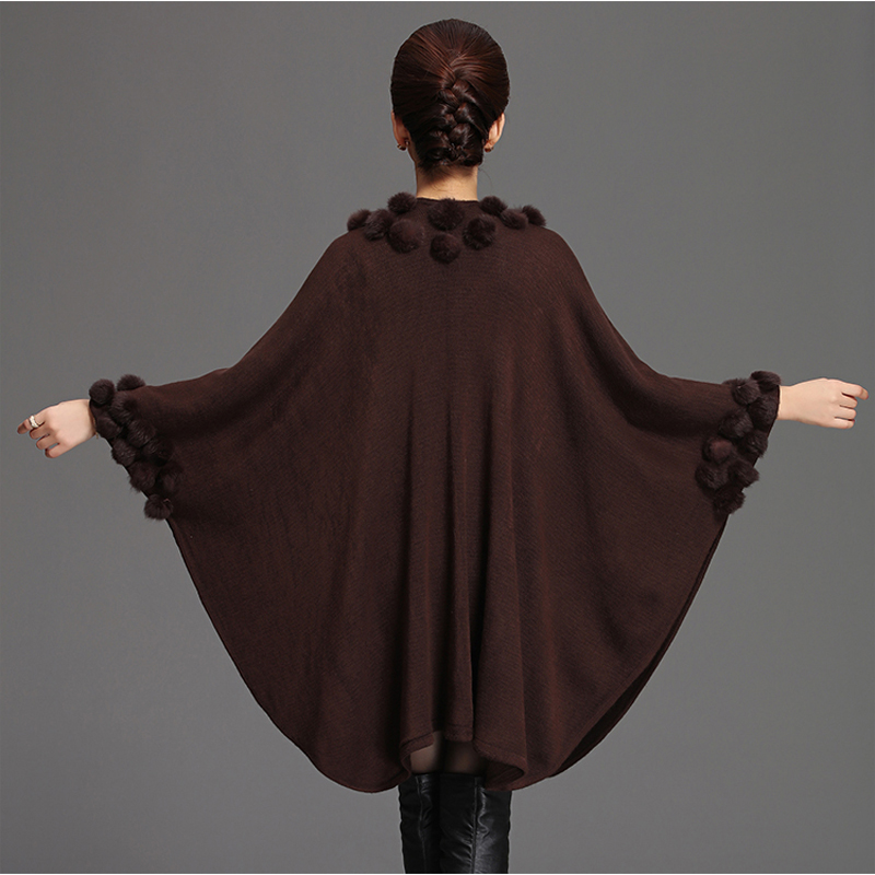 Design : Women Rabbit Fur Poncho Shawl Coat
