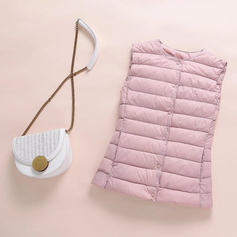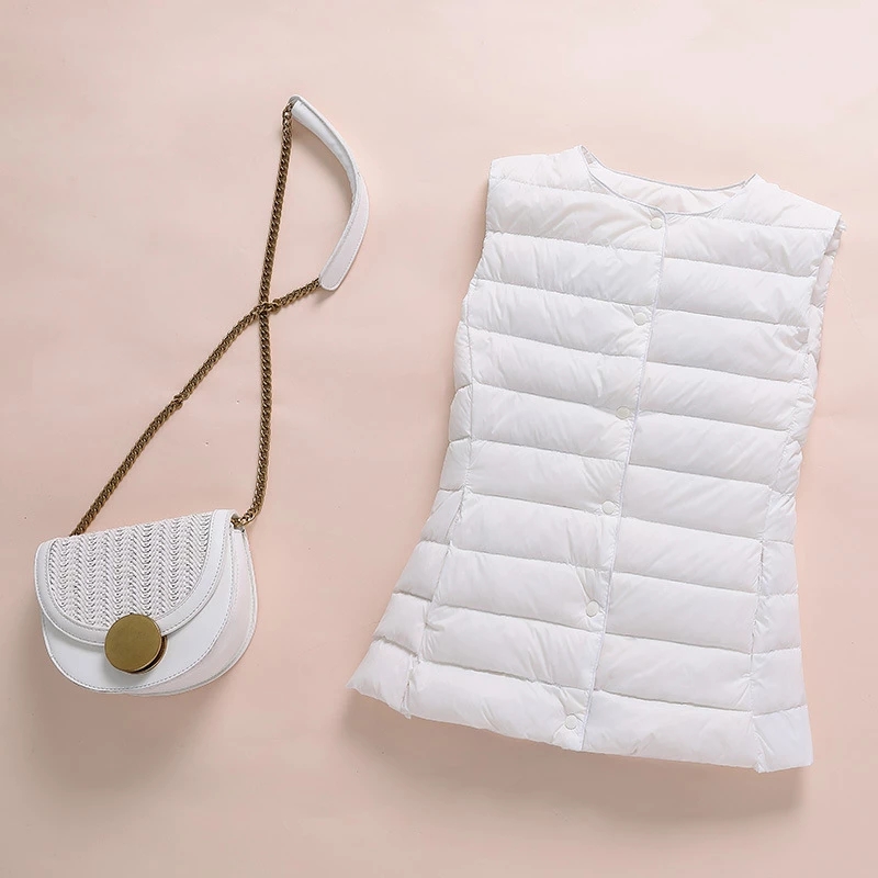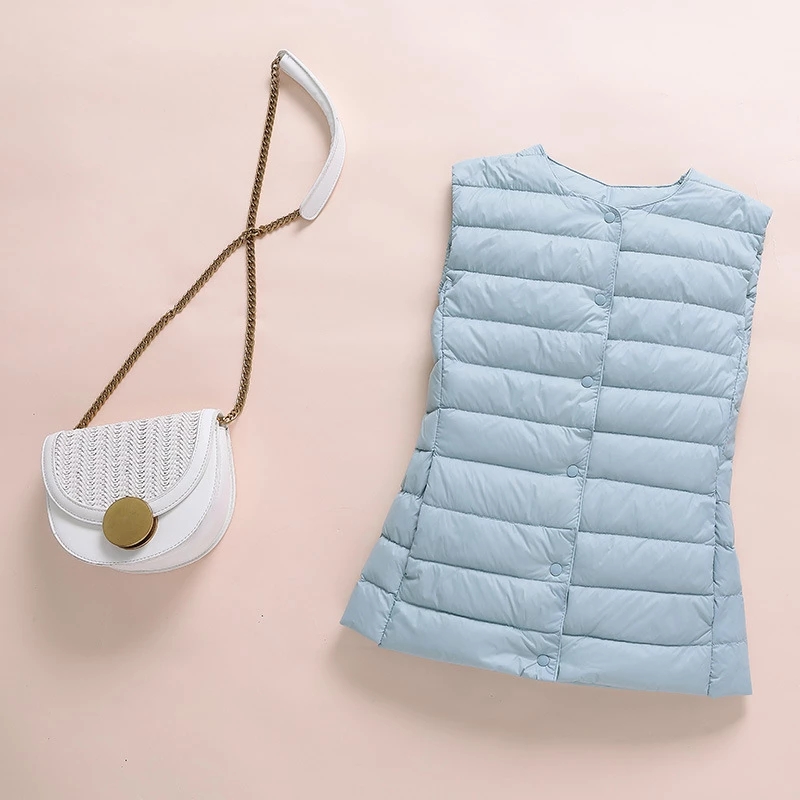 Ultralight Down Vest Women 2021 New Single-breasted Sleeveless Women Duck Down Waistcoat Puffy Padded Warm Vest Jacket
