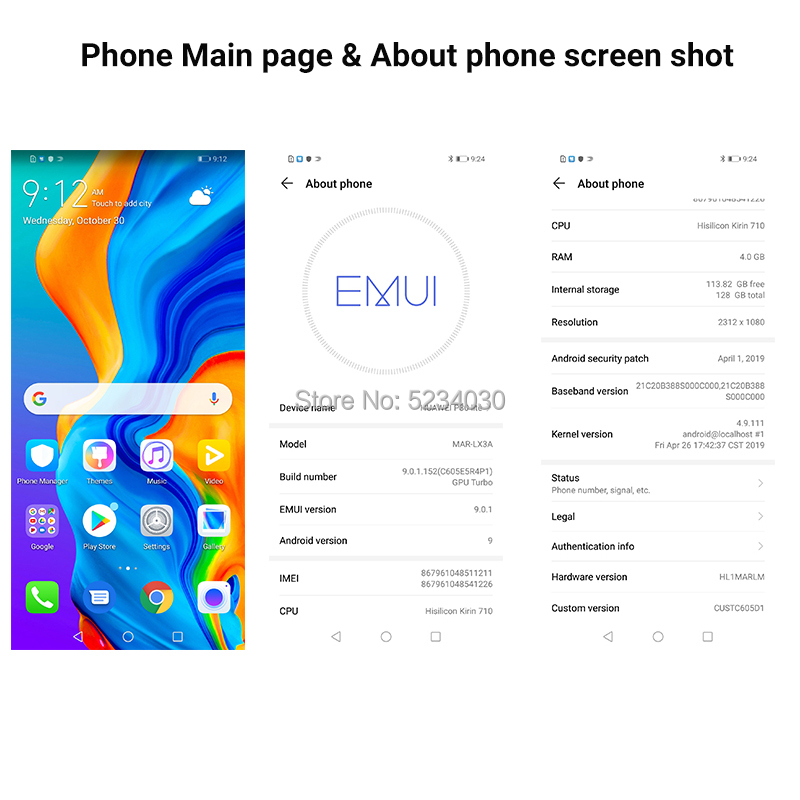 OS -----------EMUI 9.0 (Based on Android 9.0) , Global Version, Official Firmware, Supports Multi-language,Google Play and OTA.