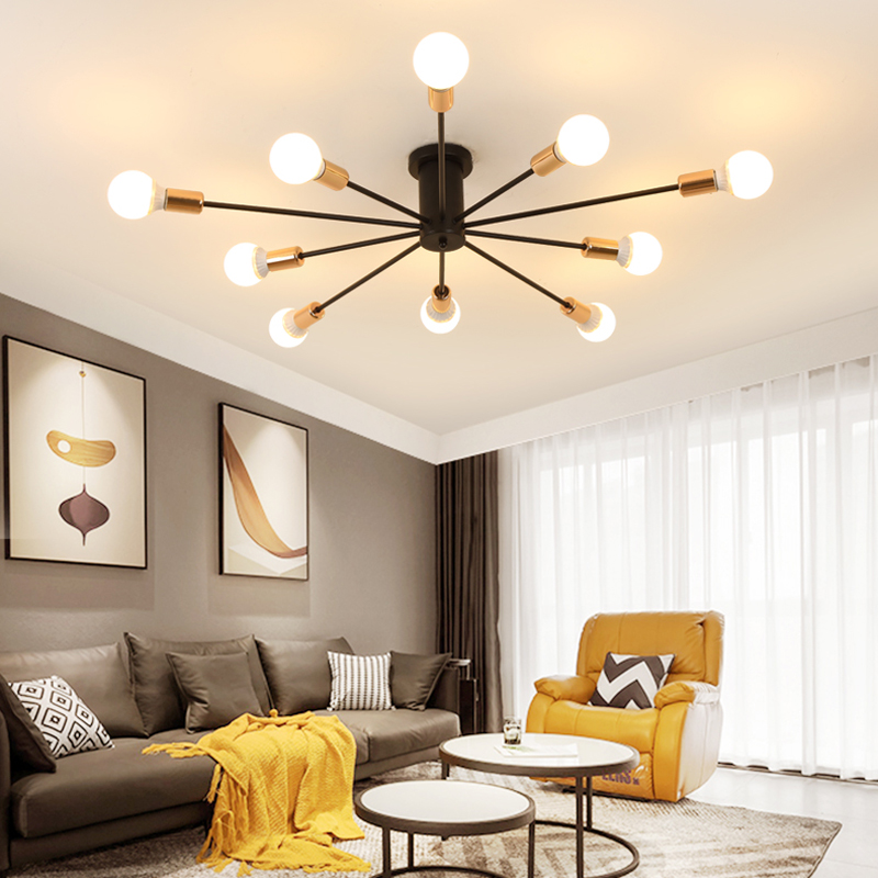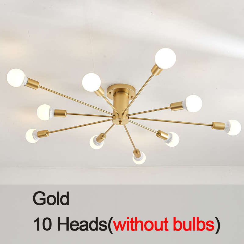 Vintage Metal Star Chandelier Lighting Black/White /Gold 6/8/10 Sockets Retro Spider Light Semi Flush Mount Ceiling Lamp Moder