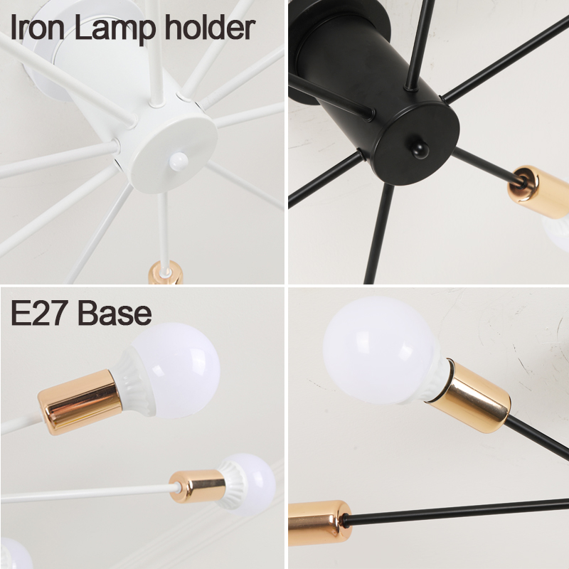 Body Material: Iron Power Source: AC Voltage: 90-260V Base Type: E27 DIMMABLE: fully dimmable when used with a dimmable bulb and compatible dimmer switch Is Bulbs Included: No Installation : Semi Flush Mount size: 6 sockets (diameter 78cm/31inch, height 20cm/6inch); 8 sockets (diameter 80cm/37inch, height 20cm/6inch); 10 sockets (diameter 80cm37inch, height 20cm/6inch);