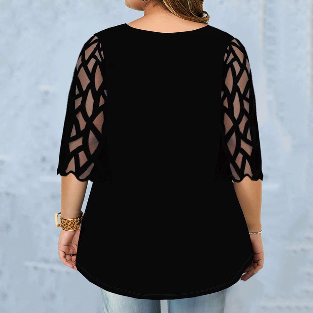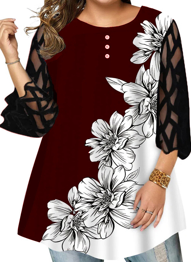 Women Plus Size TShirt Abstract Flower Print Big Yards Tops Spring Autumn Lace transparent Long Sleeve Ladies Street Hipster Tee