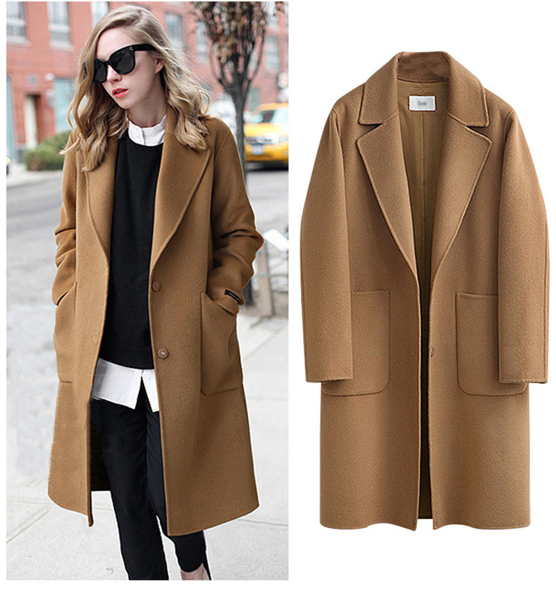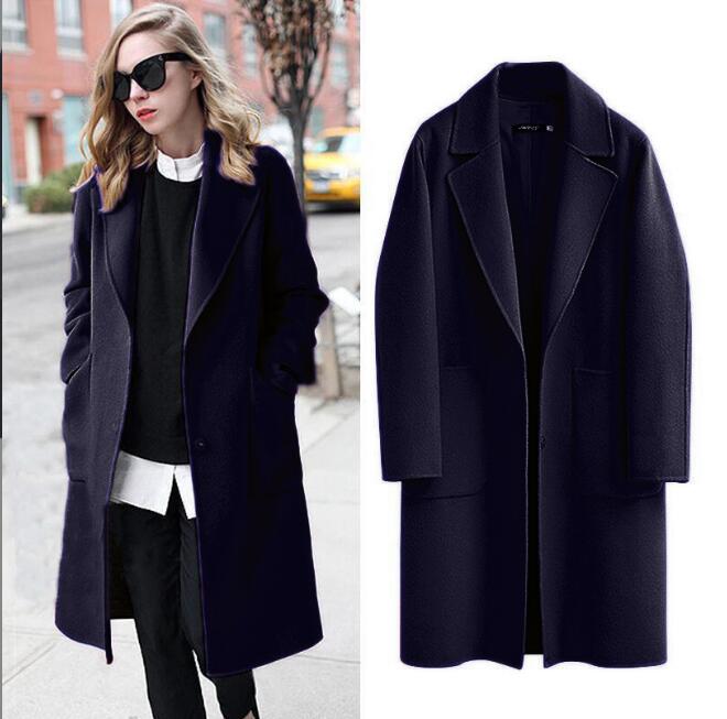 Women's Casual Woolen Coat Spring Autumn Large Size Loose Blend Winter Jacket Long Sleeve Wool Overcoats 5XL W384