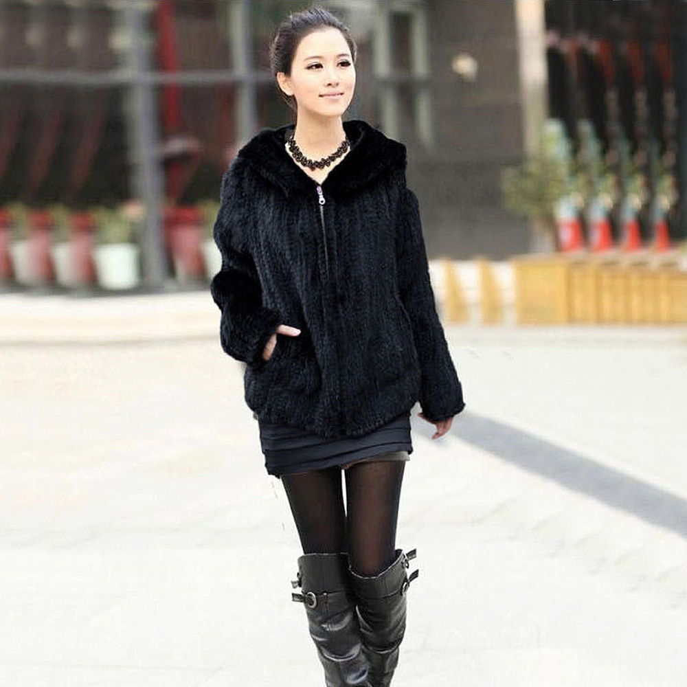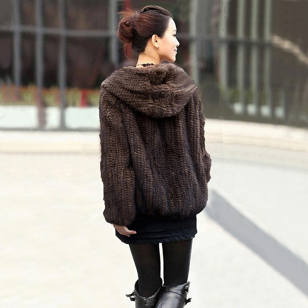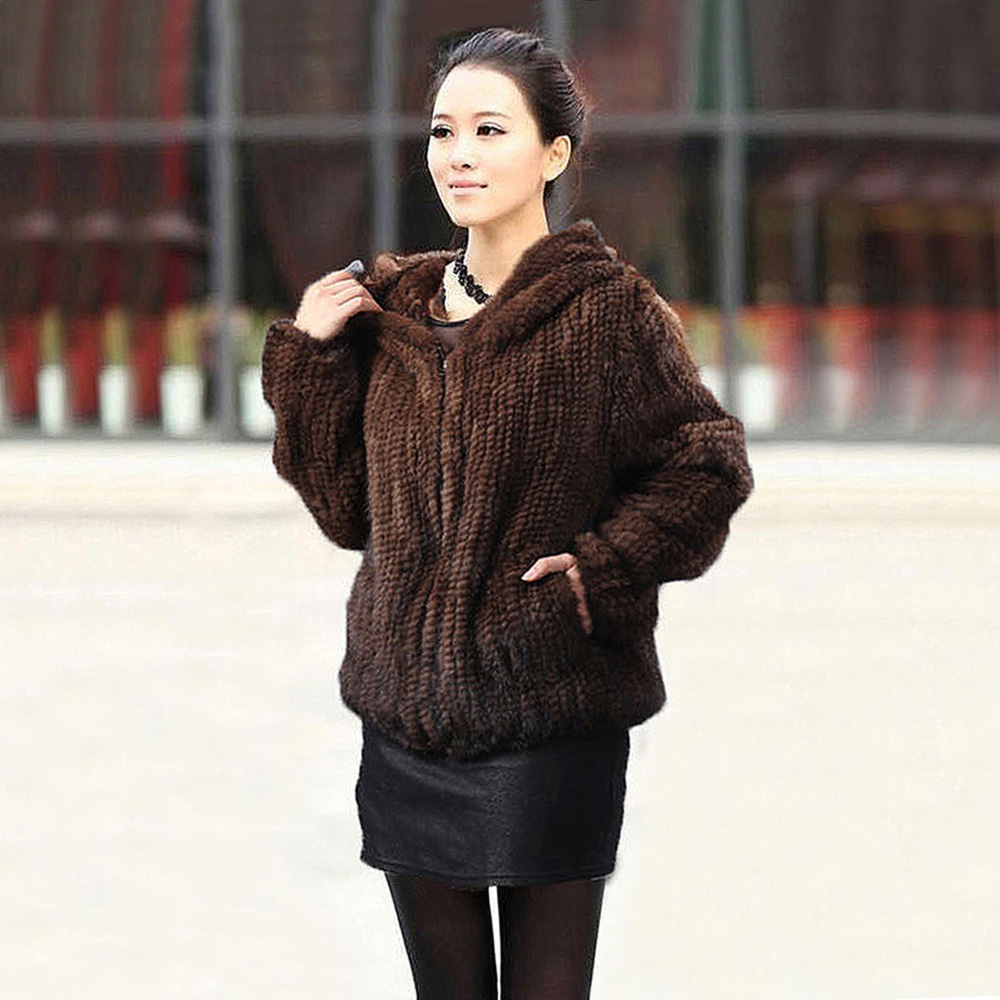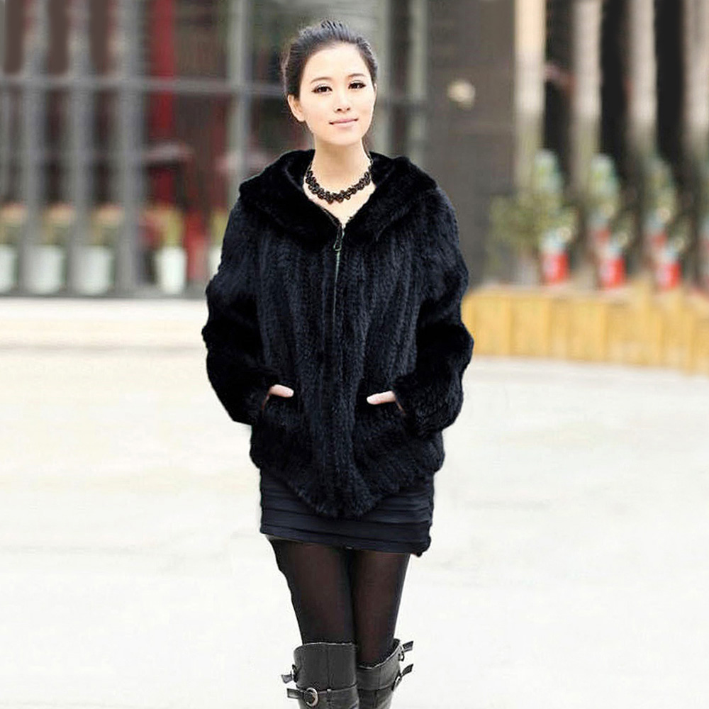 Women's Mink Fur Coat Long-Sleeve Hooded Casual Jacket All-match Zipper Knitting Outerwear Jacket Custom Plus Size