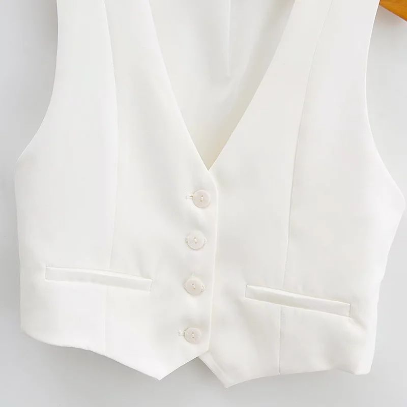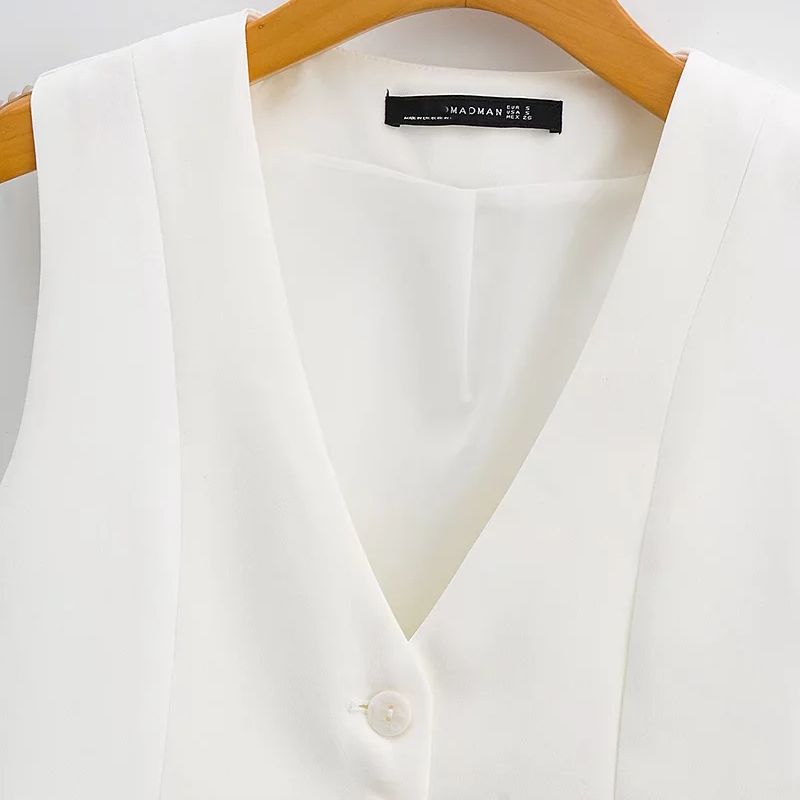 Women's Vest Sleeveless Jacket Women Coat Spring Waistcoat White Short Office Lady Business Basic Classic V Neck