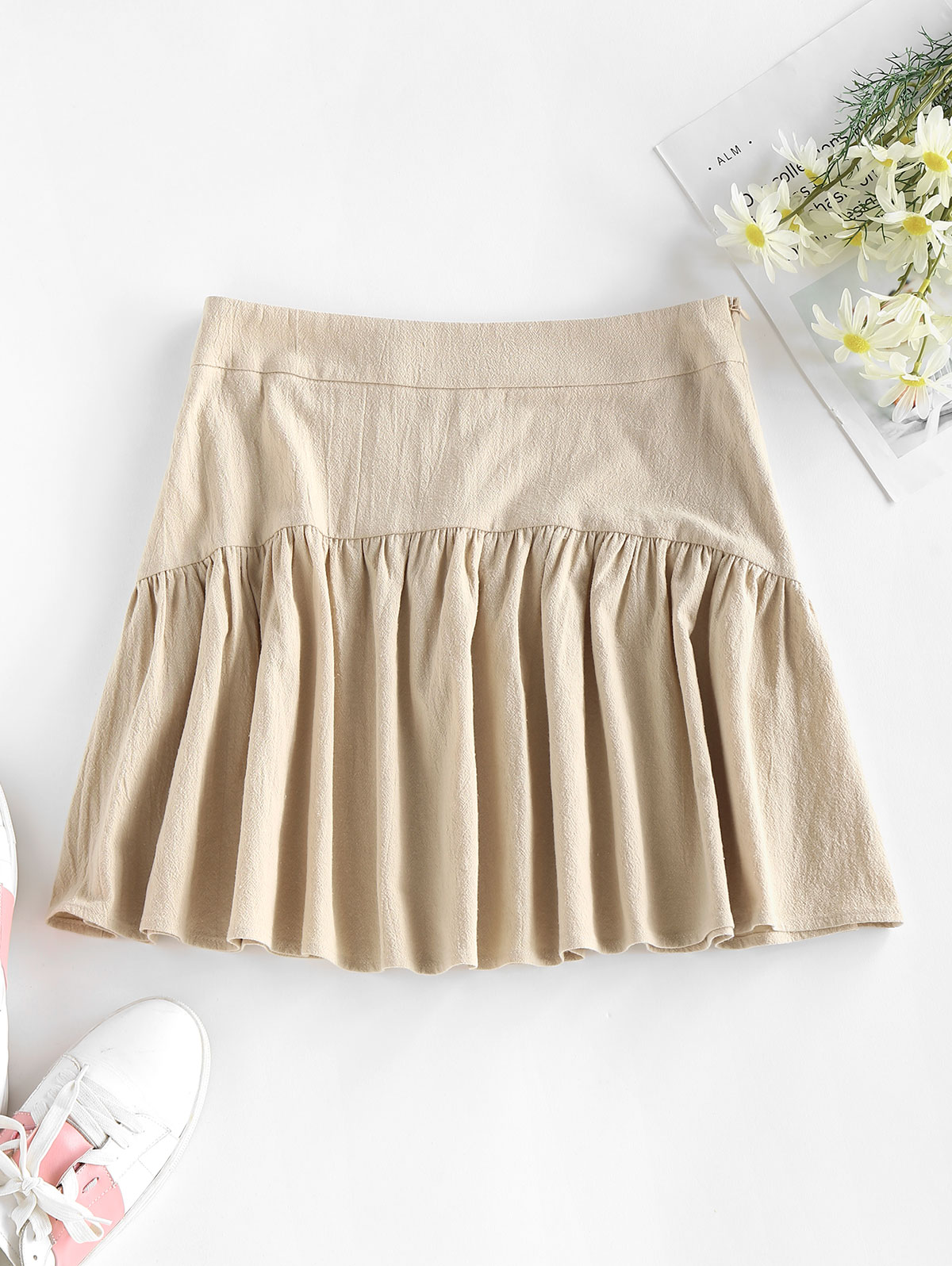 Lively wide pleats cover this cozy cotton mini skirt with a side concealed zipper that you can easily team up with your favorite crop blouse for a sunny-day stroll.