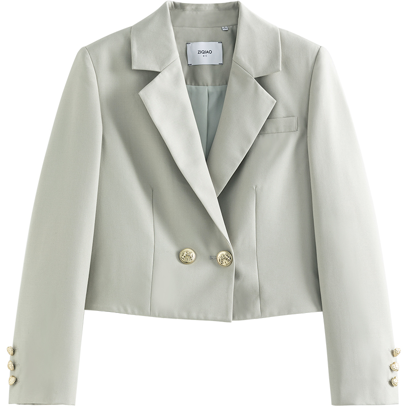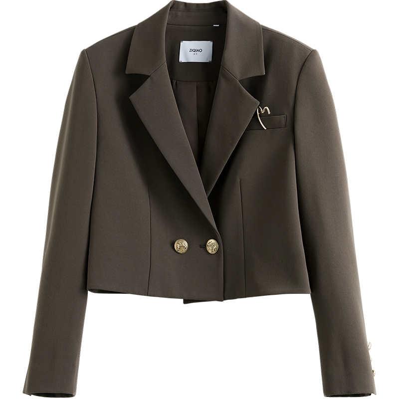 ZIQIAO Japanese Suit Collar Full Regular Sleeve Short Blazers Loose Office Lady Detachable Brooch Solid Double Breasted Jacket