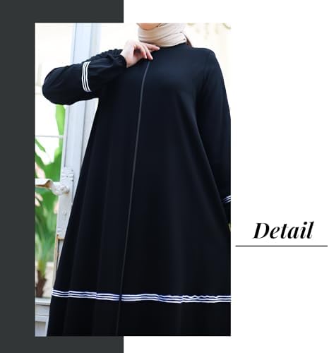 Abaya for Muslim Women | Zippered Long Sleeve Plus Size Modest Abayas with Piping Details | Muslim Women's Fashion