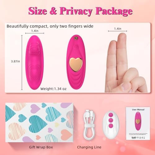 Such a fun exciting toy for a couple to use on a special date night! The color is so cute and bright Very comfortable to wear comes with a magnetic little heart that goes outside the panties to make sure it stays place. Multiple vibration settings the small and discreet size not noticeable through clothes. Chargers pretty quick and last a good time. Easy to use the remote also uses the same charger and small in size.