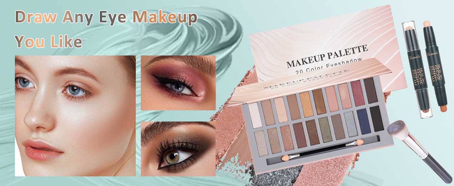 Makeup sets including 20-colors eyeshadow, mascara and Eyebrow styling cream for drawing eye makeup to various scenes, such as daily, party, festival.