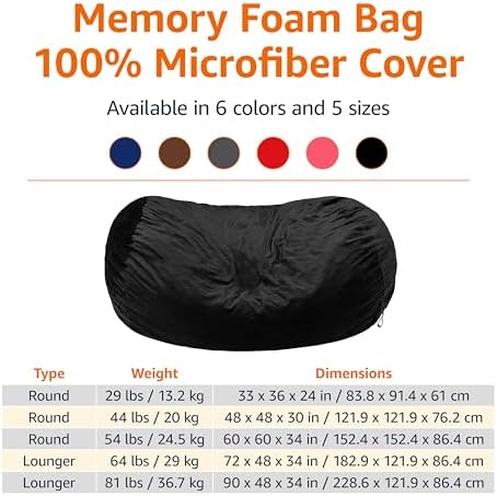 I bought the 6' lounger bean bag.First the PRO's:1.Easily the most awesome and comfy piece of furniture I have ever sat on.This is amazing!2.The cover is nice too.The material is soft and it is obviously well made.3.It might be a bean bag, but it actually looks nice.4.The price is sweet!You can use this as a couch and you won't find a comfy couch for under $200.5.It is an AmazonBasics product; you shouldn't be surprised that it is a good product.CON's:1.The measurements of 6'L x 4' W x 3' H are IF and ONLY IF the bean bag is full.Your bean bag does not ship full.It is mostly full, but not totally full.It will only fluff up to about 6' x 3.5' x 2.5.To get the max dimensions, you will need to by additional filler.Amazon should give people the option of a partly full, or a completely full bean bag.2.If you need more filler, AmazonBasics does not cover you.You will need to find a separate seller for the filler.3.AmazonBasics doesn't cover you period because replacement covers are also not available.You will need to find covers for a similar sized bean bag by a competitor such as Chillsacks or the over-priced Lov Sacks.It is nice to have a replacement cover.4.I had to buy filler to get the max size.I wanted something that someone could comfortably get up from once they had been seated.That meant adding more filler.That was a nightmare!Seriously, I was almost in tears.First I had to unzip the bean bag.There are two zippers.The first has a pull.The second one which is exposed after unzipping the first one, does not have a pull.This is for safety reasons.I had to work a paperclip into a hook to make a pull.Then I opened the filler.It was an ungodly mess.There is no easy way to add filler to the bean bag without making a horrible mess.All of this was necessary because Amazon didn't ship me a bean bag with enough filler, enough for the bean bag to be the dimensions advertised by Amazon.So, five stars because it is fabulous.....minus one star for the cost and frustration of having to fill the bean bag so that it actually is the dimensions advertised by Amazon.Should you buy this?Yes, by all means, but if you want the advertised dimensions; buy small amounts of filler that can be inserted INTO the opened, unzipped bean bag before pouring out the filler.This will still make a mess (it flies around), but the mess will not be nearly as horrible.You will pay more for the filler in 5 lb packages, but you will not have a nightmare like I did.