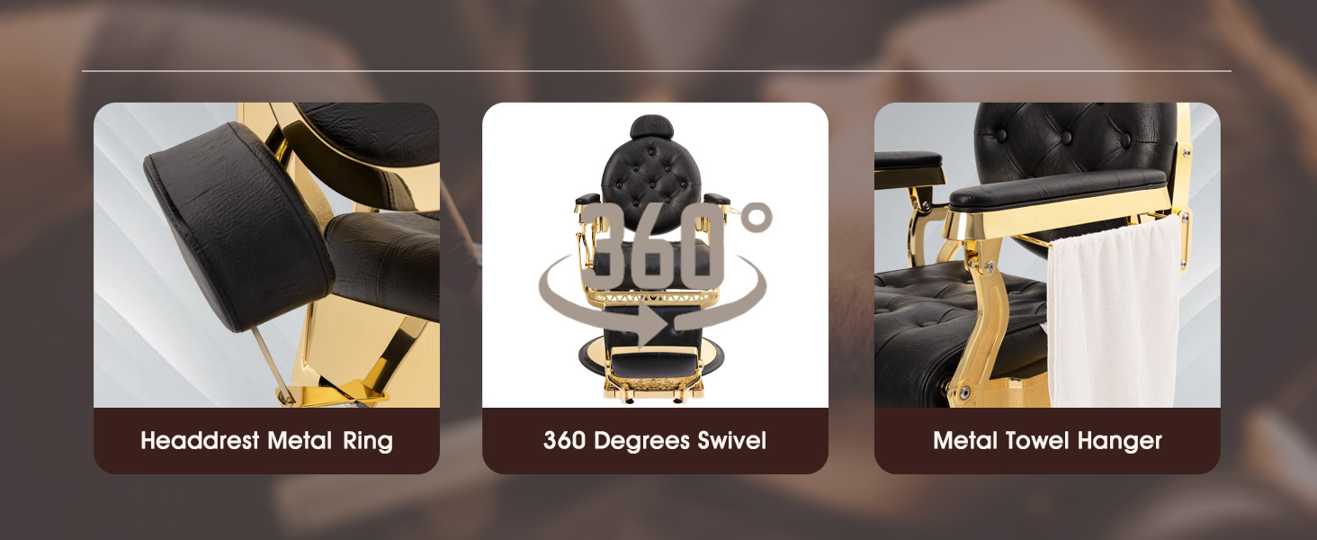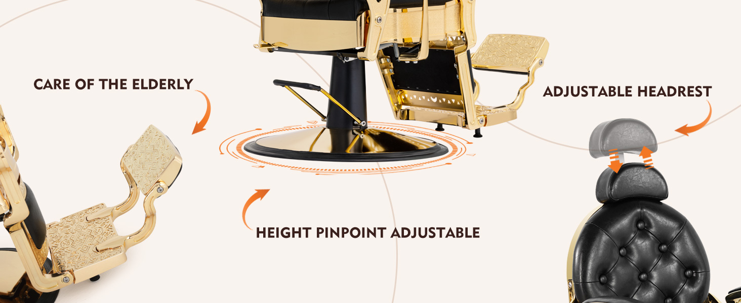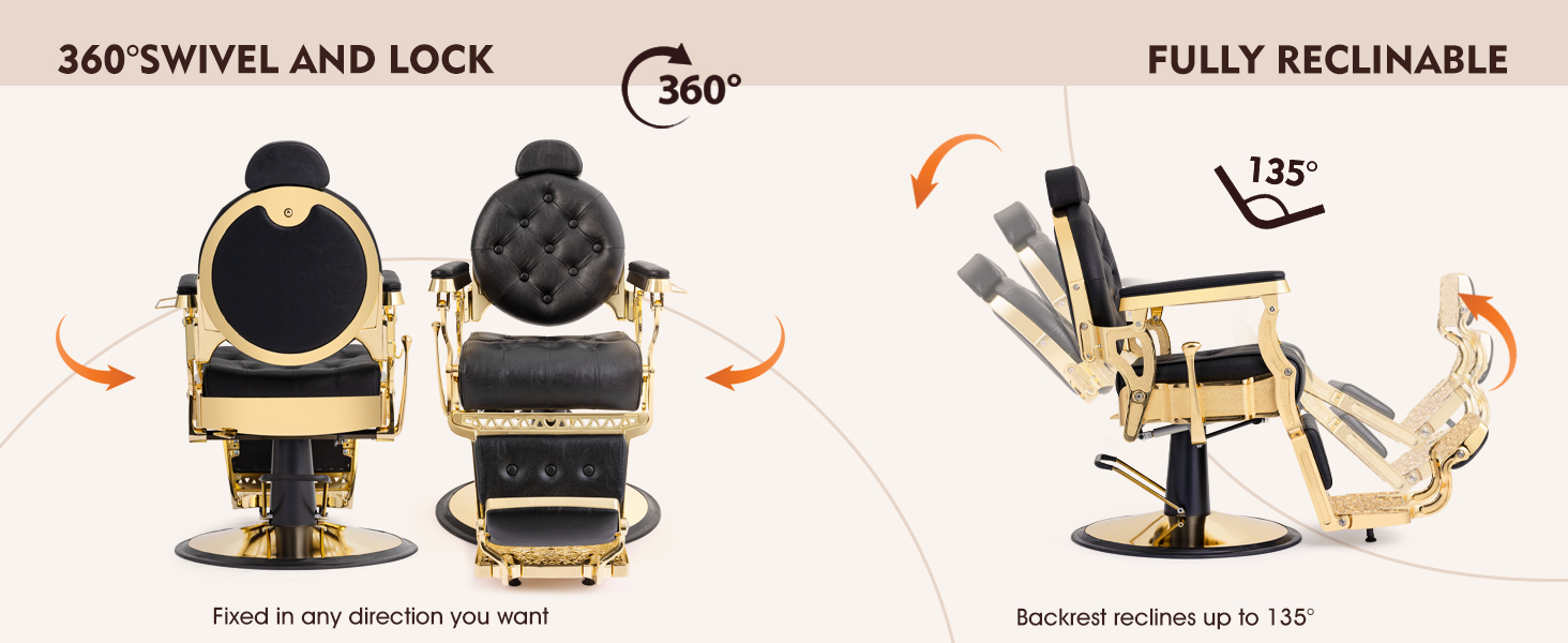 Brand Artist hand Color Gold2 Product Dimensions 24"D x 24.8"W x 40"H Special Feature Antique styling, padded armrests, adjustable & removable headrest, full 45 degree recline, metal towel & tool hangers, and backrest recline up to 135 degrees Product Care Instructions Wipe Clean Unit Count 1.0 Count Recommended Uses For Product Haircutting, Shaving Style Retro Pattern Solid Finish Type Chrome Plated" or "Chrome Finish Room Type Barbershop Age Range (Description) Adult Included Components metal towel hanger, metal tool hanger Theme Vintage Shape irregular shape Model Name Vintage Barber Chair Surface Recommendation Hard Floor Seat Back Interior Height 18.7 Inches Furniture base movement Swivel Indoor/Outdoor Usage Indoor Furniture Finish Chrome Seat Height 22.5 Inches Seat Depth 20.7 inches Cushion Style Boxed Edge Seat Length 25.8 Inches Reclining Position Count [MINIMUM] 2 Tilting Yes Is Customizable No Is Electric No Is Foldable No Form Factor Recliner Manufacturer Artist hand ASIN B0D6BK4PP3 Customer Reviews