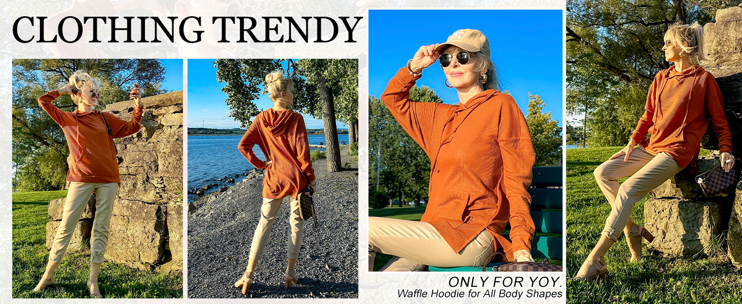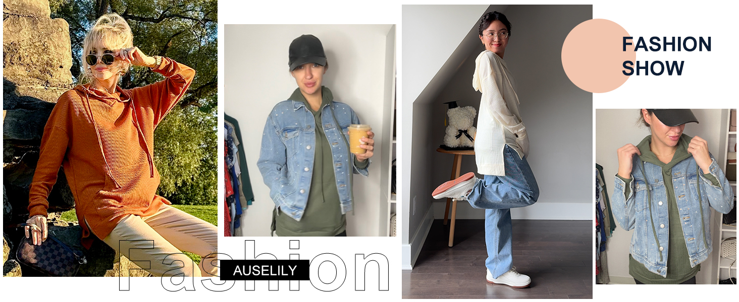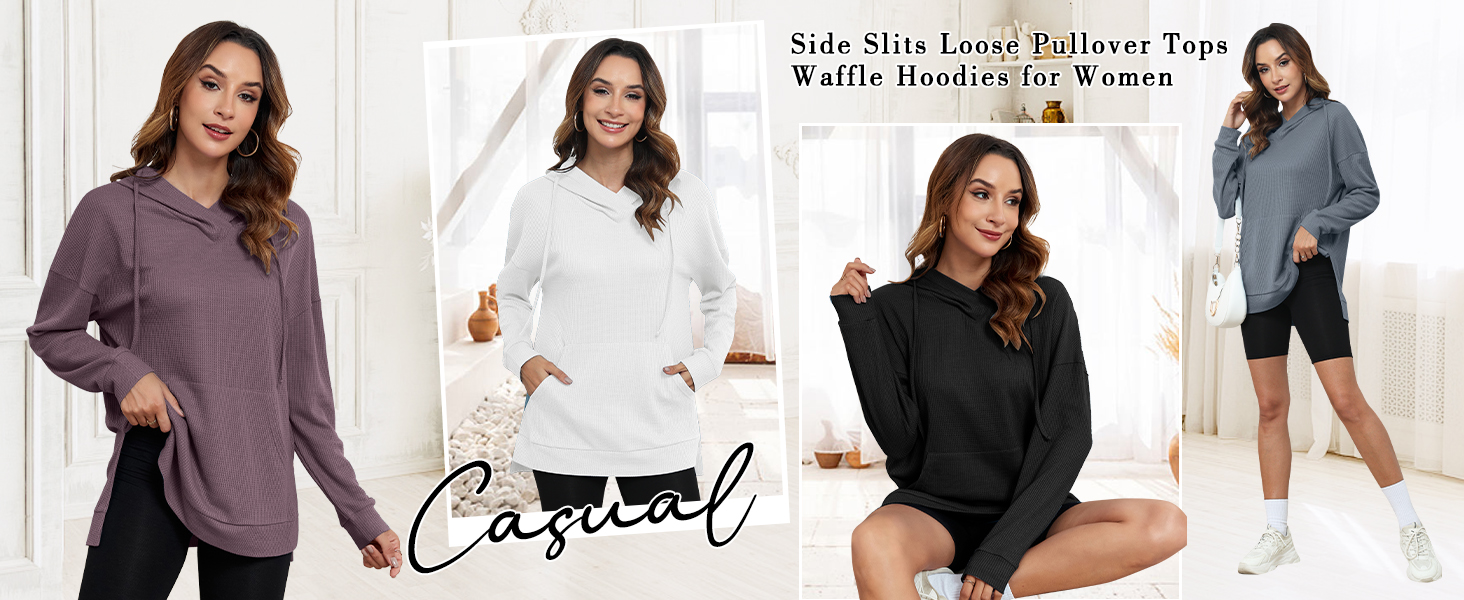 AUSELILY Women Long Sleeve Waffle Knit Pullover Hoodies Tops S-3XL