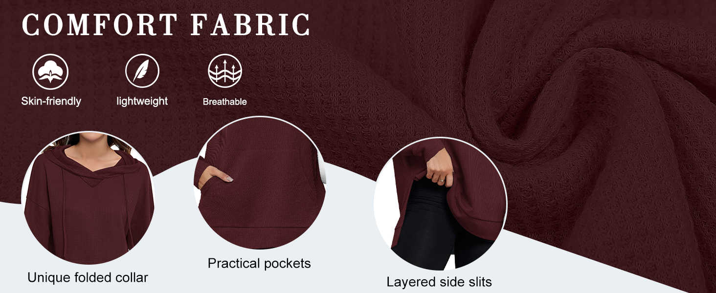 AUSELILY Womens Waffle Hoodies Ladies 2024 Sweatshirt Fall Long Sleeve Loose Side Slits Stacked V Neck Tops With Pockets
