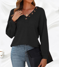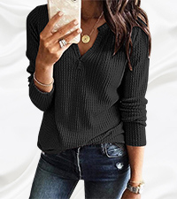 • AUSELILY Womens Long Sleeve Waffle Knit Shirt Stacked Collar Lightweight Tops