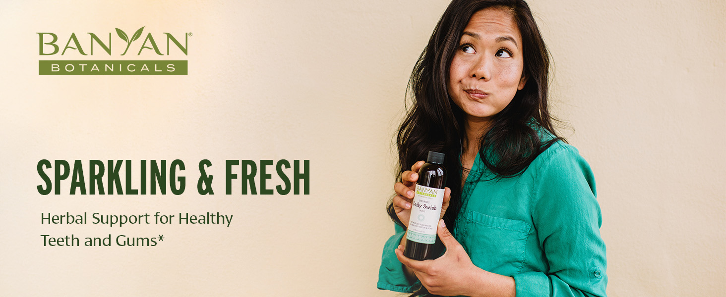 Daily Swish is infused with cleansing and nourishing herbs, including Ayurveda's renowned triphala formula.