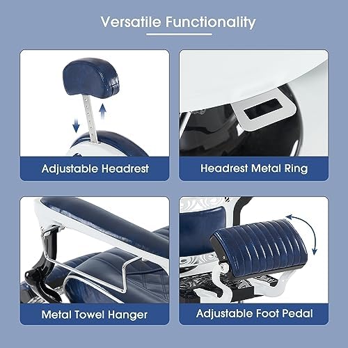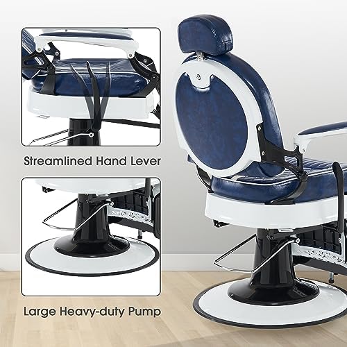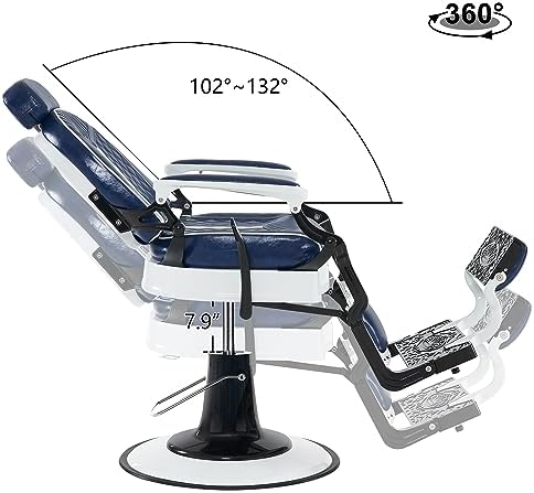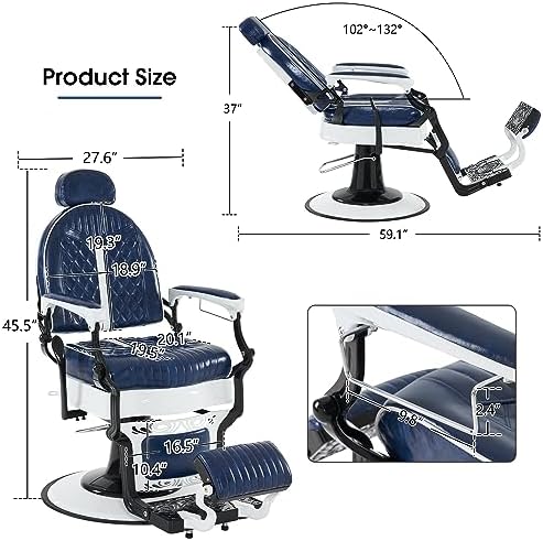 6154-8730BL This retro vintage professional reclining chair has a modern classic design. Diversified functions and adjustability reclining lever can help you realize your haircut and beauty dreams in professional barbershops, home barbershops, beauty salon and more!