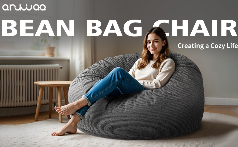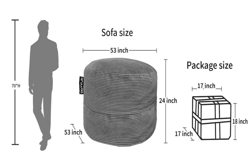 We got this bean bag for our family room to be used for movie watching and video gaming. The bag is super heavy, however it’s important to know this bag easily rolls so you don’t have to pick it up.It comes compressed in a super heavy box, you will need help unless you open the box an slide it out where it is and open the bags to release the bag. It’s fairly easy to get the cover on and I like how you can take it off to wash.Also the memory foam piecesinside seem to be a better option than those beans that eventually compress because they maintain their shape and cushion.The bag itself is round and is accommodating for everyone. This bag is perfect for teens and kids. I would certainly recommend, please make note of this size. It is quite large.