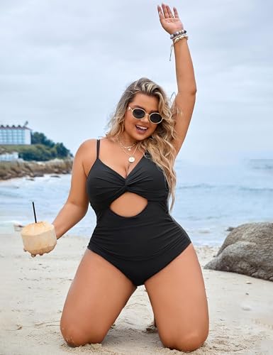 Blooming Jelly Womens Plus Size Bathing Suit Tummy Control One Piece Swimsuit Twist Front Ruched Swimwear