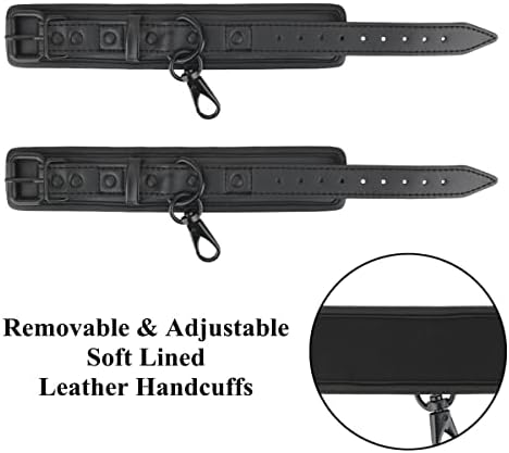 - PU leather material of the b-ondage cuffs are strong and are lined with very soft.