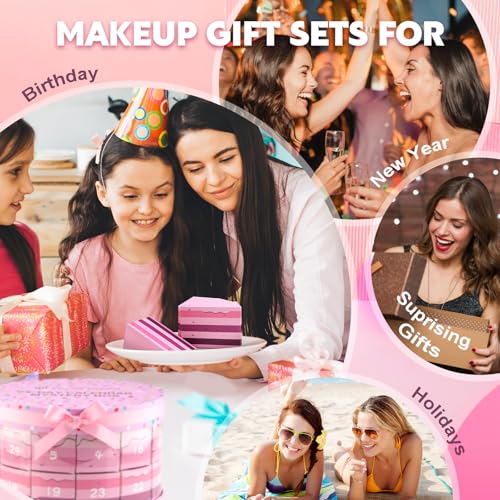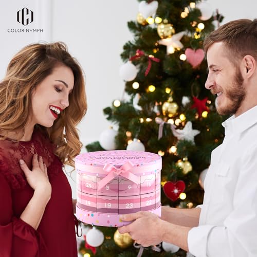Color Nymph Makeup Advent Calendar 2024, 24 Days Advent Calendar Christmas New Year Makeup Gift Sets for Beauty Cosmetic Starter Kit For Teens Girlfriend Daughters Surprise Holiday Gift (Pink)