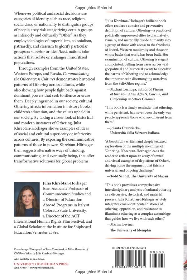 This is truly compellingexploration of the profound impact of identity on political and social change. I appreciate how the book not only highlights the tragic consequences of cultural Othering but also provide into the resilience of marginalized groups."Communicating the Other across Cultures" is an invaluable contribution to the discourse on identity, power, and societal change. Highly recommend!