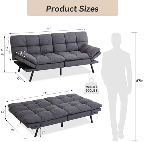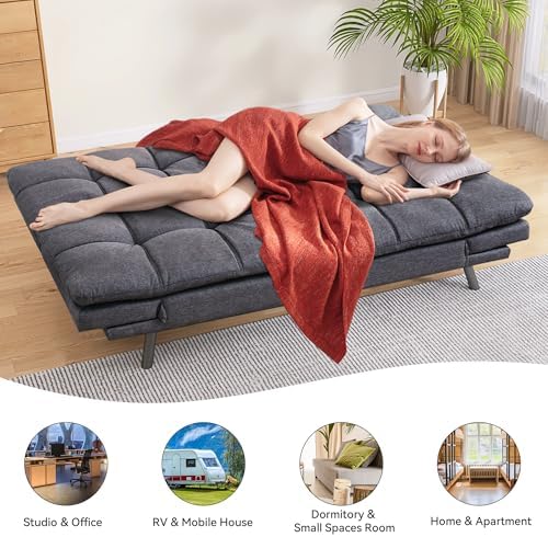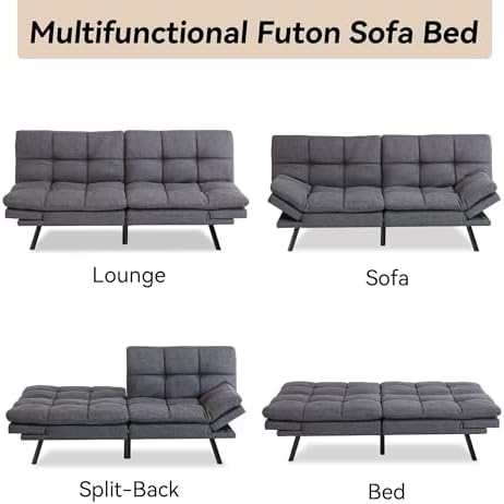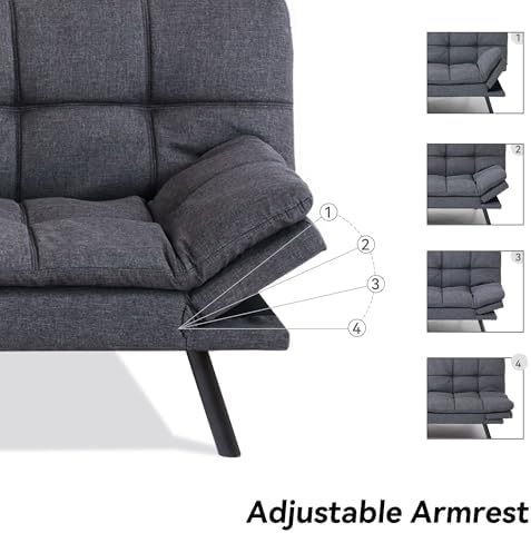 Convertible Futon Sofa Bed Couch,Linen Fabric Memory Foam Futon Couch,Loveseat Sleeper Sofa Bed,Small Splitback Modern Sofa Couch for Living Room,Office,Apartment,Deep Grey
