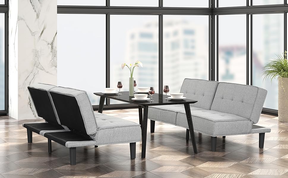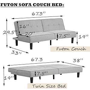Convertible Futon Sofa Bed is a multi-functional sofa that you can easily convert into a recliner or sleeper sofa, whether you are relaxing, playing games, or sleeping!