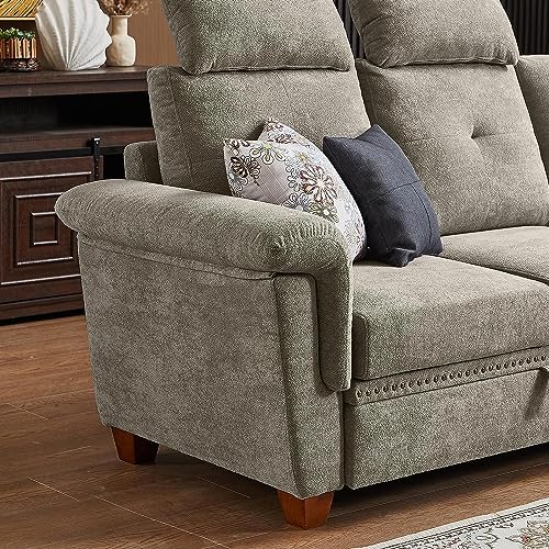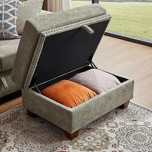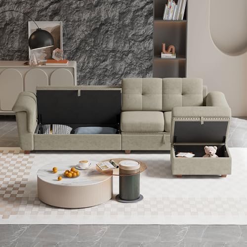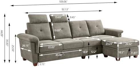 I ordered the DARKGREY couch and I absolutely love it. The cushions are thick, very comfortable and has Velcro on the bottom to hold them in place. It's pretty easy to assemble the couch, has tons of storage under the cushions of both sides of the couch and ottoman and can easily sit 4-5 people.If you're looking for a quality couch on a budget, I can't recommend this enough.