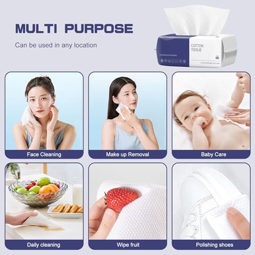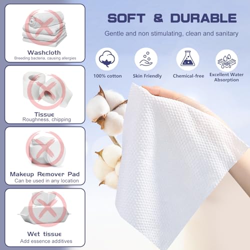 Disposable Face Towel, 100 Count Face Clean Towels, for Washing Soft Cotton Dry Wipes Facial Cloths Towelettes for Washing and Drying, Facial Tissue for Cleansing, Skincare and Makeup Remover