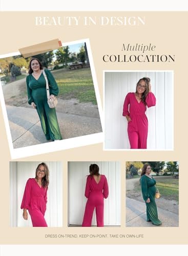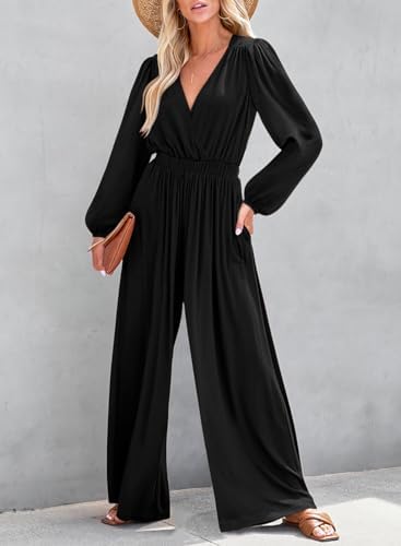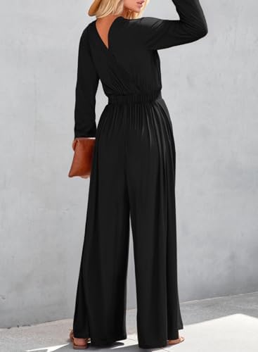 Dokotoo Long Sleeves Jumpsuit Wrapped V Neck Elegant for Womens Dressy Outfits