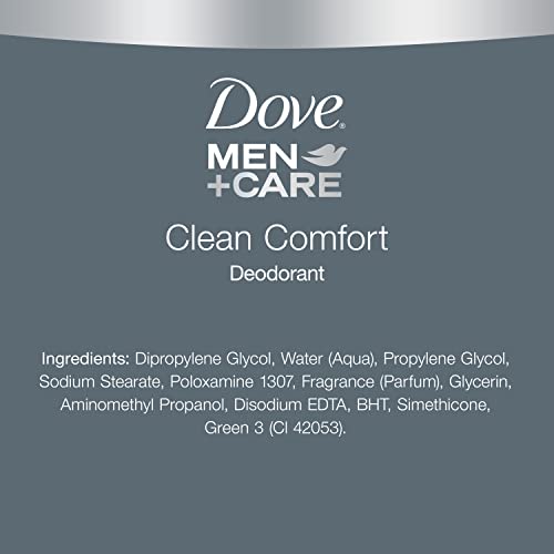 As part of the Dove Men+Care Clean Comfort range, Dove Men+Care Clean Comfort Deodorant stick has triple action moisturizers to soothe and condition skin for underarm care. As with all Dove Men+Care Deodorants, it’s powerful and effective – you get long-lasting, 48-hour protection against odor. This long-lasting deodorant offers you freshness with a clean scent. Delivered in a convenient stick form, this deodorant with a clean men's fragrance is compact enough to take with you whether you need to apply after your shower, before or after the gym or just want to stay fresh after a day in the office. Next time you need a simple deodorant for men that won’t slow you down in the morning, grab Dove Men+Care Clean Comfort Deodorant Stick. Our deodorant stick is a reliable deodorant with a subtle scent that works as long and hard as you do. Get a boost of comfort and freshness on the move and superior skin protection with our moisturizer technology with Dove Men+Care Clean Comfort Mens Deodorant. Best results, apply your Dove Men+Care Clean Comfort Deodorant Stick to each underarm until the skin is covered in an even layer. Allow the deodorant to dry on your underarms before dressing.