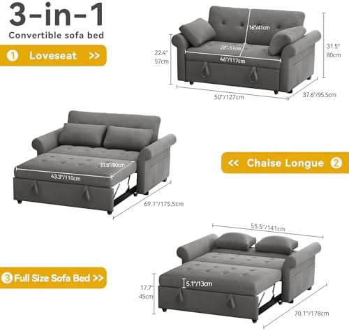 DWVO 3 in 1 Sleeper Sofa Bed, Grey