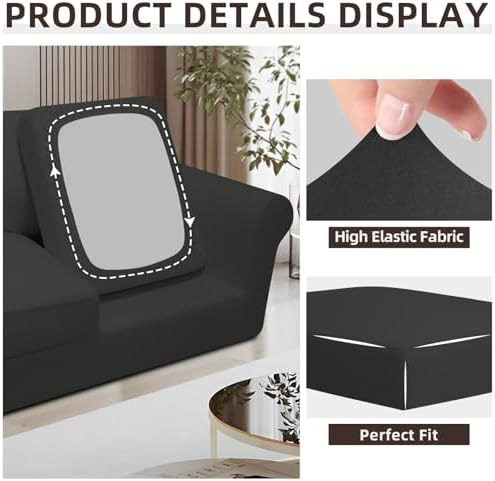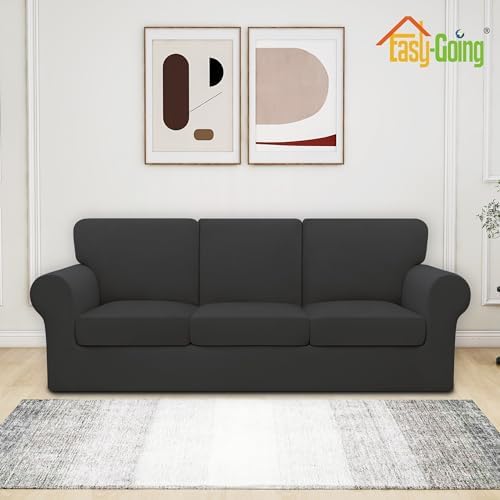 Easy-Going 7 Pieces Stretch Couch Cover Washable Sofa Cover Set for 3 Backrest and Seat Cushion Couch Anti-Slip Sofa Slipcover Furniture Protector with Elastic Bottom (Large, Dark Grey)