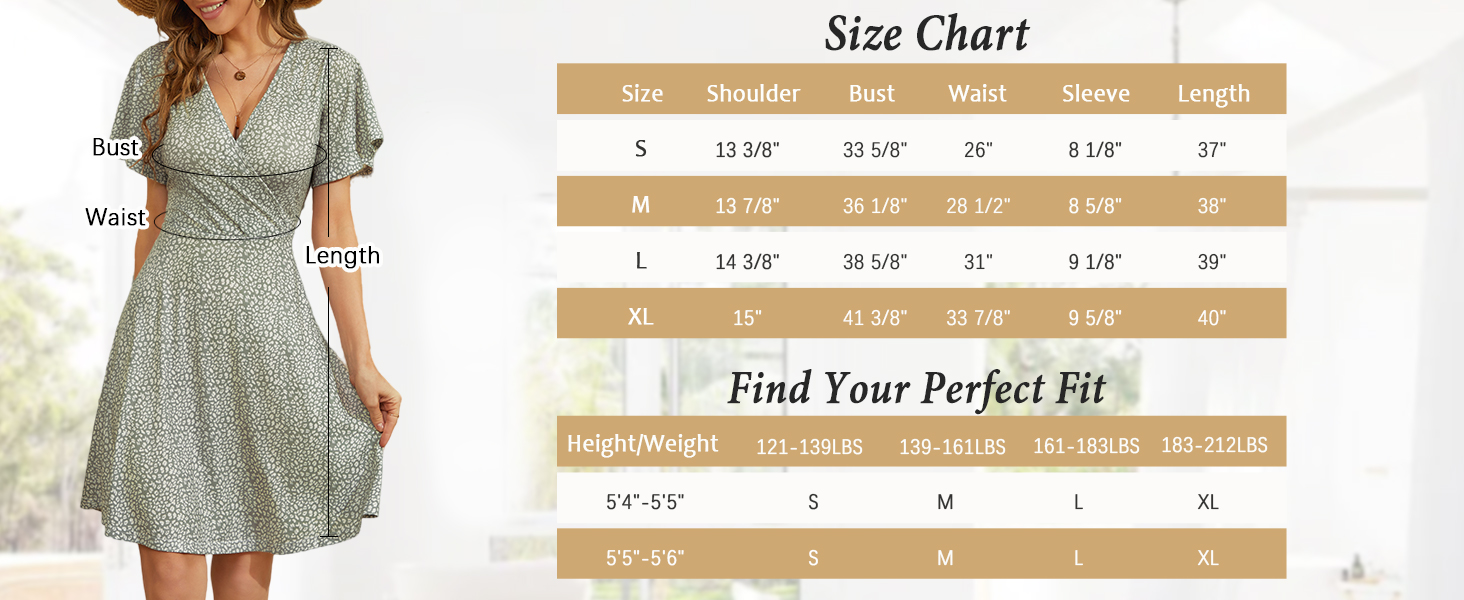 Features: Short Sleeve/ Fixed Wrap V Neck/ Knee length/Floral Print.