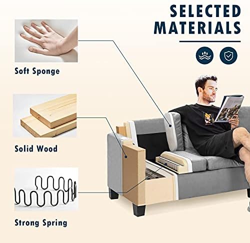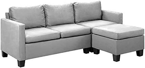 Cushions are firmer than I expected. Was easy to assemble. Legs are plastic. Ottoman is actually softer than sofa. Suede like material wrinkles. Overall, a nice sofa for the money.