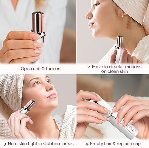 Facial hair removal device with small compact design is gentle enough to use everyday before putting on makeup, no need to wait for regrowth, so you can enjoy hairless skin everyday without nicks, bumps or razor burn